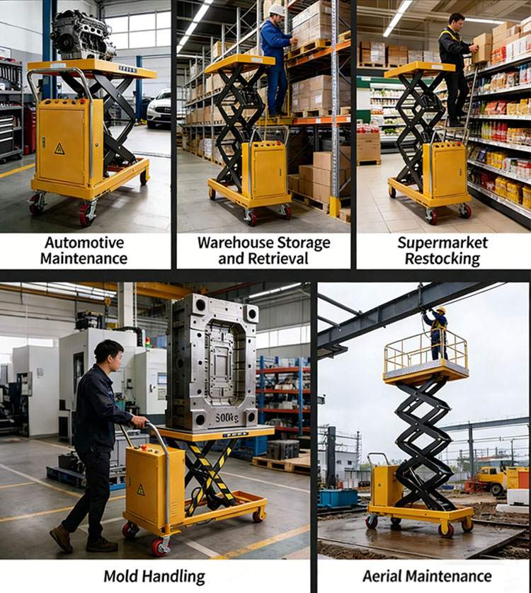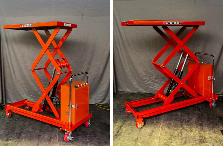 Die mobilen elektrischen Hebebühnen verfügen über hochfeste Scherenarme aus legiertem Stahl, die strukturell stabil sind und eine hohe Verformungsbeständigkeit aufweisen. Der Hebevorgang verläuft reibungslos und störungsfrei. Das Doppelscheren-Strukturdesign ermöglicht einen größeren Hubhub und erfüllt so die Anforderungen von Arbeiten in unterschiedlichen Höhen.