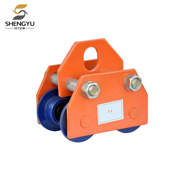 Die Laufkatze wird durch manuelles Schieben zum Heben schwerer Gegenstände angetrieben und läuft auf der unteren Flanschkante der I-Trägerschiene. Durch das Aufhängen eines Kettenzugs oder einer anderen Hebevorrichtung unterhalb der Laufkatze kann diese zu einer manuellen Hebe- und Transportkatze werden. Die Installation erfolgt auf Einschienenhängebahnen (egal ob gerade oder gebogen) oder auf manuellen Einträger-, Brücken- und Auslegerkranen. Es ist weit verbreitet für die Installation von Maschinen und das Heben von Gütern an Orten wie Fabriken, Bergwerken, Docks, Werften, Lagerhäusern und Maschinenräumen und eignet sich besonders für Wartungsarbeiten an Geräten an Orten ohne Stromversorgung.